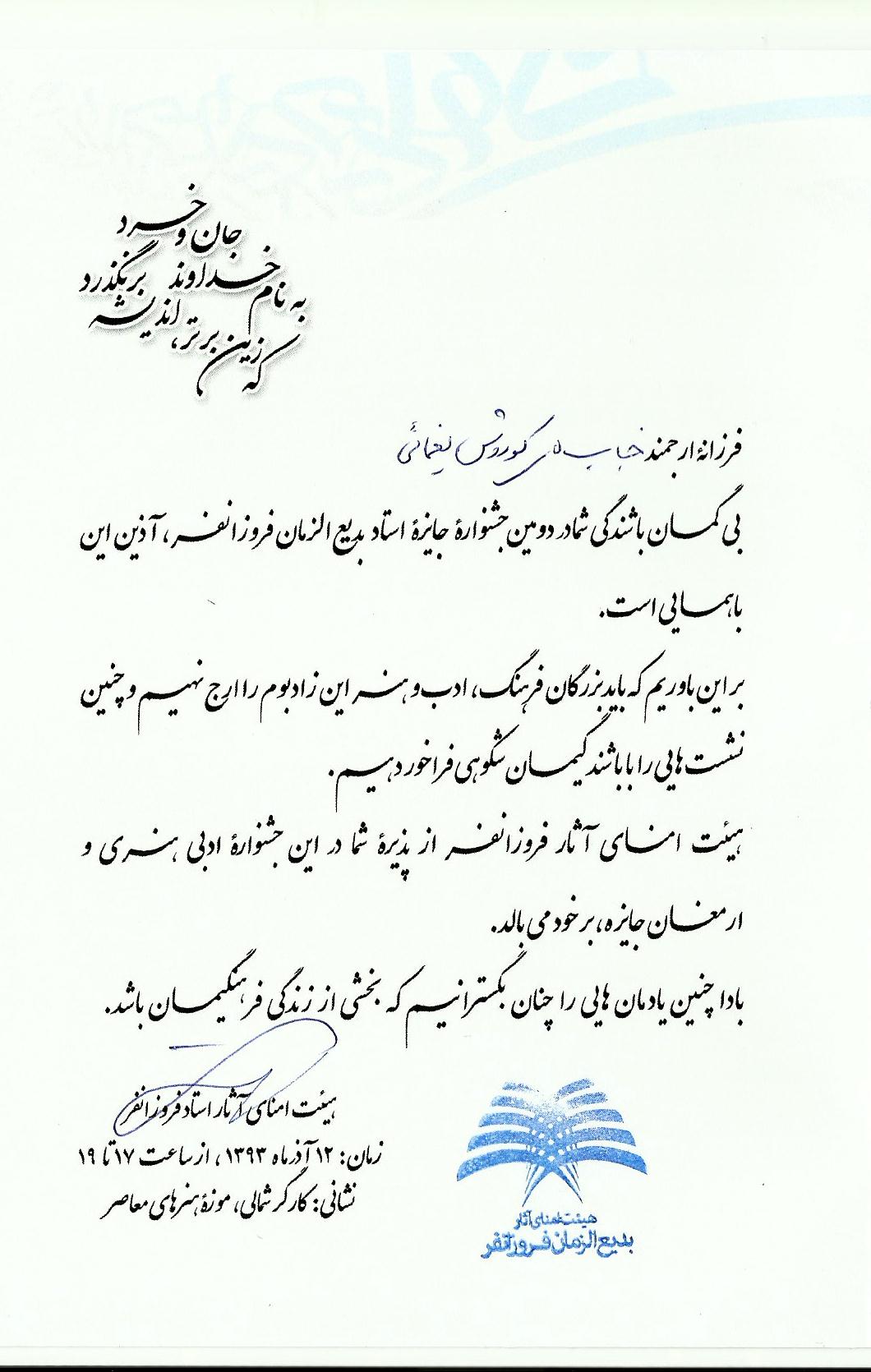 با سپاس بیکران از استاد کوروش یغمایی بابت مهری که همیشه نسبت به من